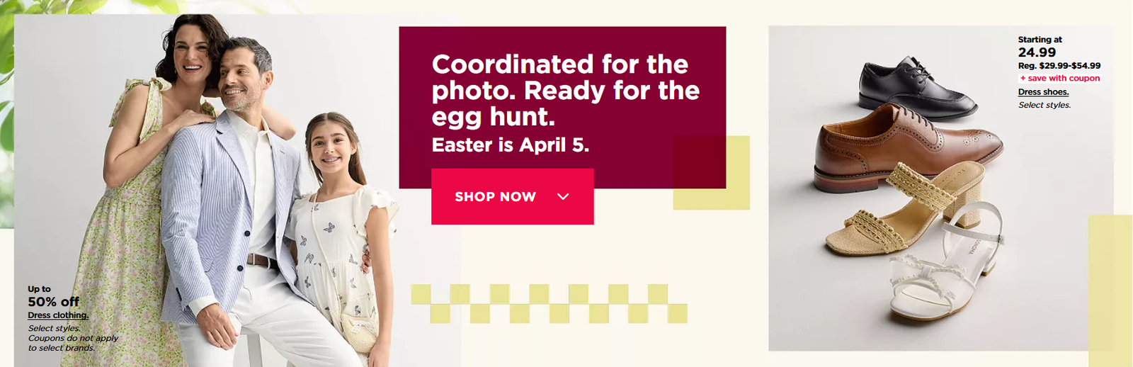 Pricing, promotions and merchandise availability may vary by location and at Kohls.com. "Sale" prices and percentage savings offered are discounts from Kohl’s Regular (Reg.) or Original (Orig.) prices, and are valid on selected styles of merchandise unless otherwise indicated. The Reg. or Orig. price of an item is the former or future offered price for the item or a comparable item by Kohl’s or another retailer. Actual sales may not have been made at the Reg. or Orig. prices, and intermediate markdowns may have been taken. Orig. prices may not have been in effect during the past 90 days or in all trade areas. Merchandise could be offered at the same or lower "Sale" prices during future promotional events beginning on or after the last day of this advertised event. The following merchandise are excluded from "Entire Stock" promotions in this advertisement: Clearance, Kohl’s Cares® cause or other charitable items, Licensed Team, Sephora at Kohl’s, emerging brands and Kohl’s Online-Exclusive items. In some events, actual savings may exceed the percent savings shown. Kohl’s® and Kohl’s brand names are trademarks of KIN, Inc. ©2026 Kohl’s, Inc. With respect to certain Price Break merchandise featured in this advertisement, the "previous sale" price represents sale prices recently advertised in Kohl’s print advertising. Clearance and Closeout Deal prices represent savings off original prices. Interim markdowns may have been taken. Selection of sizes, colors and styles may be limited per item. Sorry, no price adjustments.