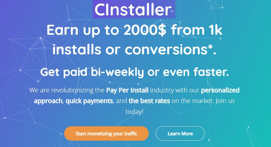 CInstaller can help you to Earn upto 2000$ from 1k conversions or installs*. Payments are even faster get paid bi-weekly or even prior to that. They are a revolution for Pay Per Install Industry with their personalized approach, faster payments and the best rates among all other. What are you waiting for Sign up now!